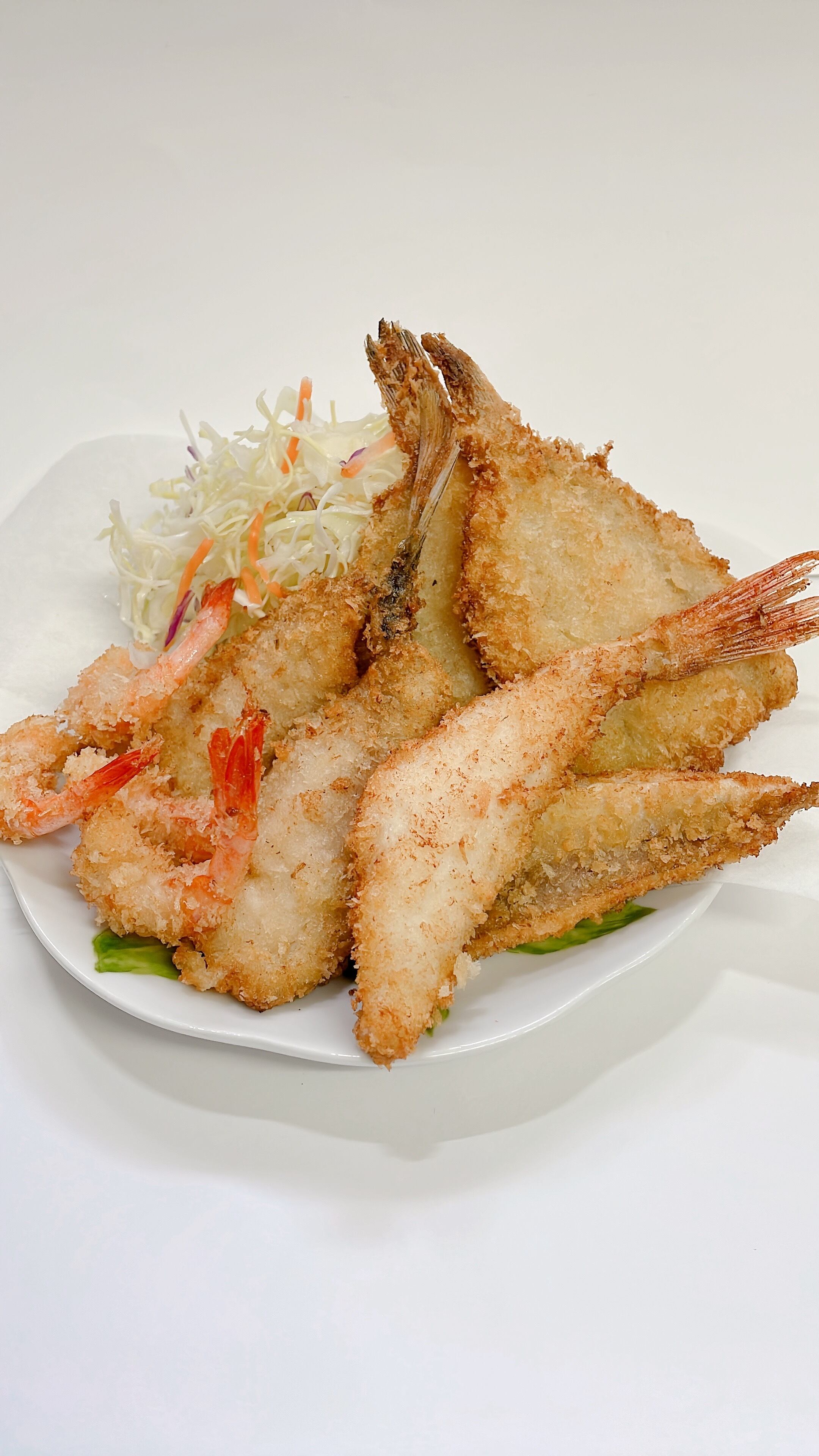 【南蛮エビ】【アジ】【ヤナギカレイ】【カナガシラ】【ヒラメ】【タラ】【キス】【イカ】などご注文された季節の旬の地魚をフライセットにしてお送りします。