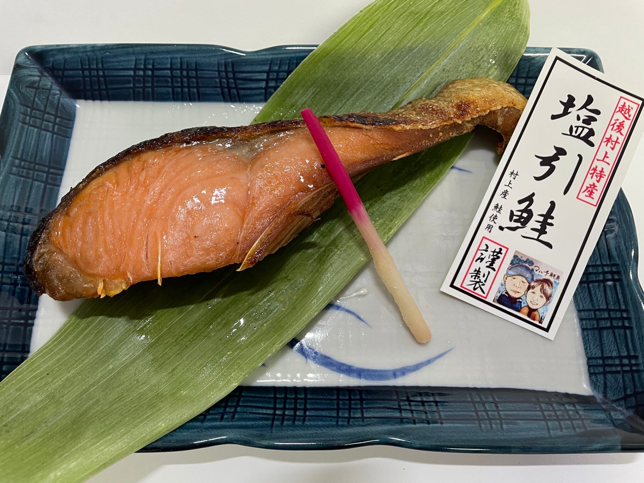 新潟県村上市といえば『塩引き鮭』です。TVなどでも度々話題になるくらい代表的な魚です。店主が1つひとつ真心を込めて作り冬に店先で寒風で乾燥させています。塩で味が凝縮し、ご飯が何杯も進みます。